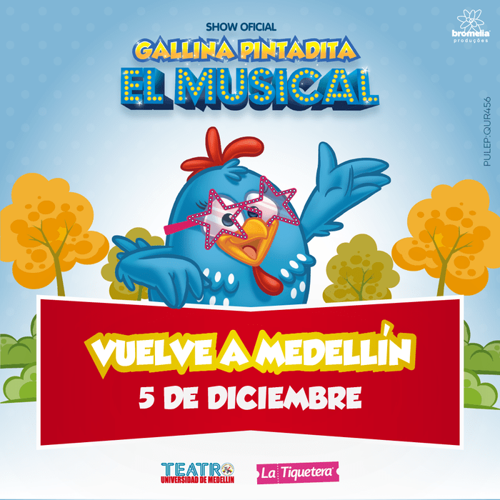 La primera cuidad que visitará la Gallina Pintadita será Medellín en el teatro de la Universidad de Medellín.