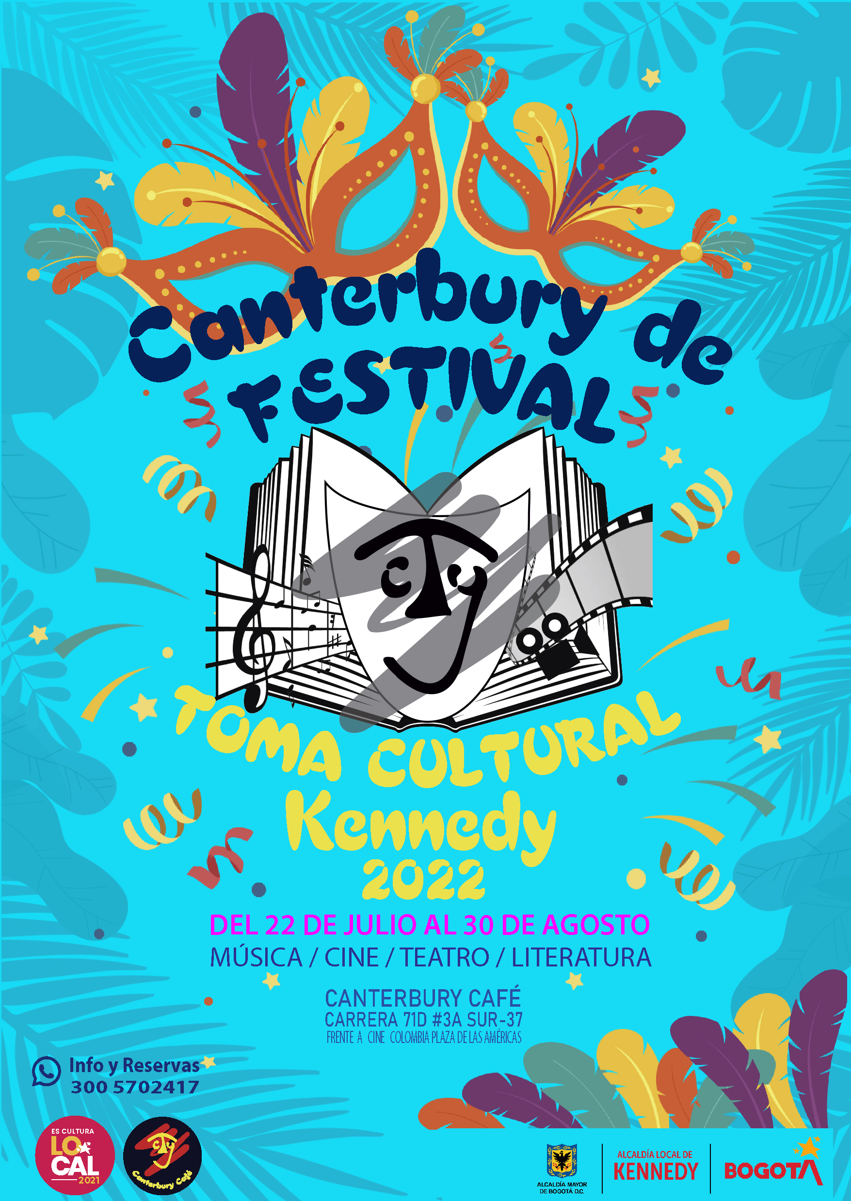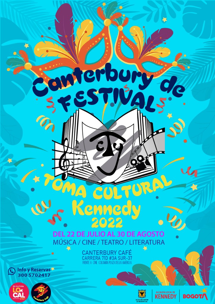 Canterbury de festival Toma cultural Kennedy 2022, es la realización de una propuesta de programación artística y cultural en el marco del programa Es Cultura Local, apoyado por la alcaldía local de Kennedy y el Instituto Distrital de las Artes – IDARTES. Este festival tiene lugar en el escenario de Canterbury Café entre 22 de Julio y el 20 de agosto, donde a través de su gastronomía y de sus actividades artísticas y culturales y de entretenimiento el público Bogotano podrá disfrutar de conciertos de música en vivo, obras de teatro, conversatorios literarios y cine.